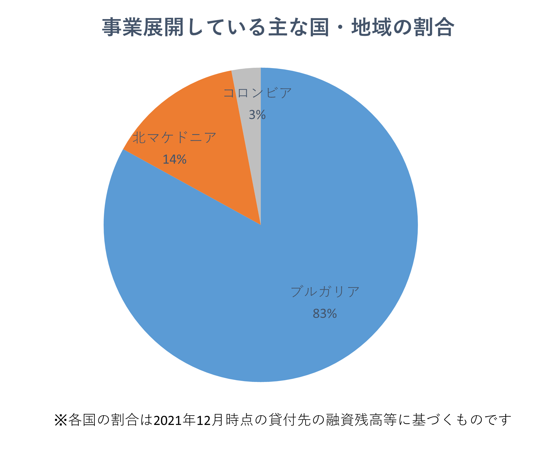Credissimo社の主力市場はブルガリアで、同国向けの貸付け残高がグループ全体の8割以上を占めています。一方で2016年以降は国外展開にも注力しており、現在ブルガリア以外では、同国の隣国で同じくバルカン地域に位置する北マケドニア等で事業を展開しています。