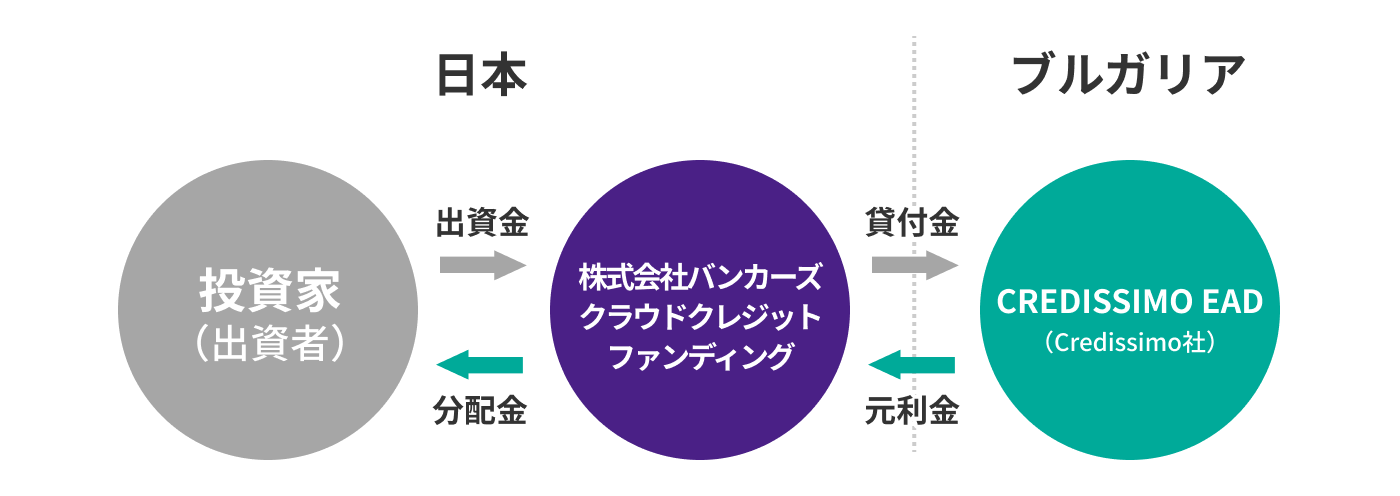 本ファンドは、ブルガリア、北マケドニア等で短期のオンライン個人貸付を行う金融事業者グループ CREDISSIMO EAD(以下「Credissimo社」といいます) に対して円建てで貸付を行います。